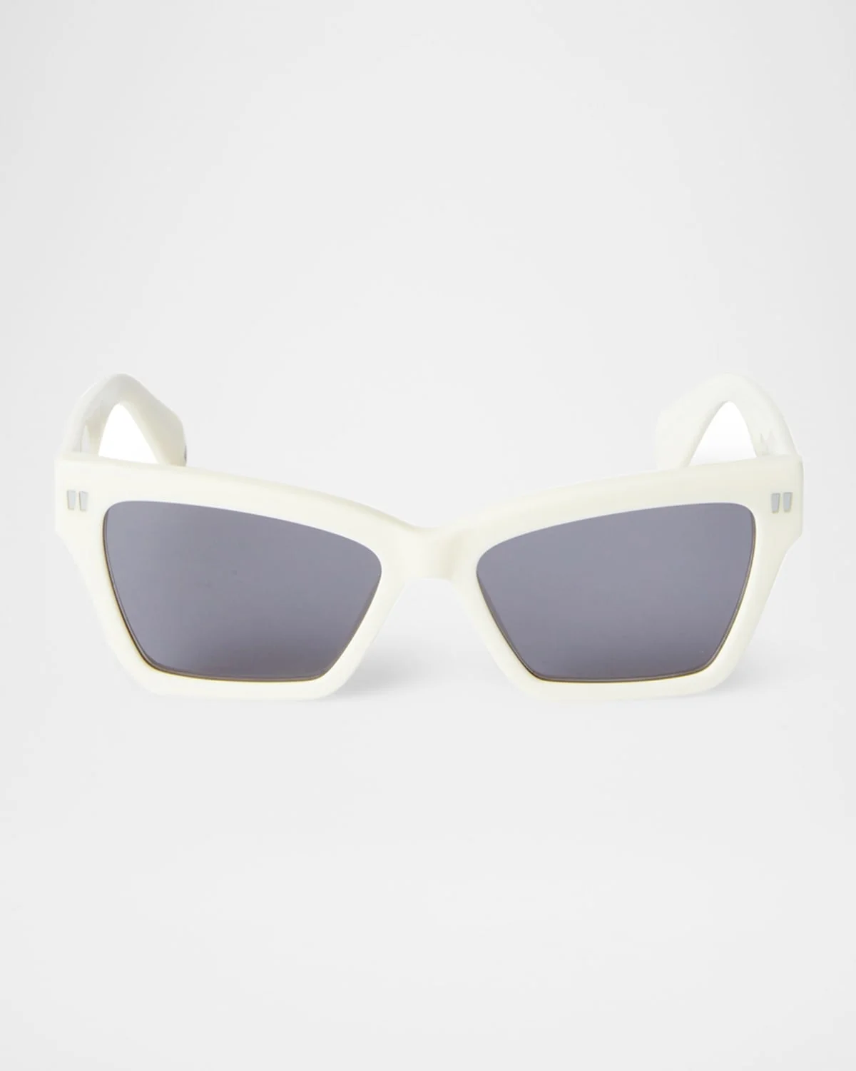 - Off-White "Cincinnati" cat-eye sunglasses in acetate - Eye/bridge/temple (in mm): 54-16-145 - Solid lenses - Saddle nose bridge - Thin, tapered arms - Classic logo at the temples - Acetate - 100% UVA/UVB protection - Made in Italy - Proposition 65 warning for California residents