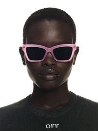 One of the icons that returns season after season, these acetate sunglasses feature a rectangular frame with stretched sides and a thicker top that transitions to a slimmer profile. They are completed with signature quotation marks on the temples and metal foil logos on the arms. Made in Italy. MATERIALS 100% Acetate FITTING Model Lee Donggyu wears size O/S Height: 6' 1'' (185 cm) Chest: 33'' (84 cm) Waist: 26” (66 cm) Hips: 33'' (85 cm)