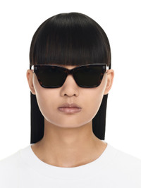 These acetate sunglasses feature a subtle cat-eye shape to their geometric silhouette, with a thicker top edge that transitions to a slimmer profile. They are completed with signature quotation marks on the temples and metal logos on the arms. Made in Italy. MATERIALS 100% Acetate FITTING Bust 0cm Height 0cm Hips 0cm Waist 0cm