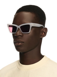 One of the icons that return season after season, these acetate sunglasses feature a rectangular frame with stretched sides and a thicker top that transitions to a slimmer profile. They are completed with signature quotation marks on the temples and bookish logos on the arms. Made in Italy. DETAILS - Acetate 100% - Code: OERI110C99PLA0010964