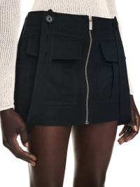 This 100% cotton mini skirt features cargo pockets and buttoned straps. Made in Italy. MATERIALS Lining: 100% Viscose Outer: 100% Cotton FITTING Model Athiec Geng wears size 38 Height: 5’ 10" (179 cm) Chest: 30” (76 cm) Waist: 24” (61 cm) Hips: 34.5'' (88 cm)