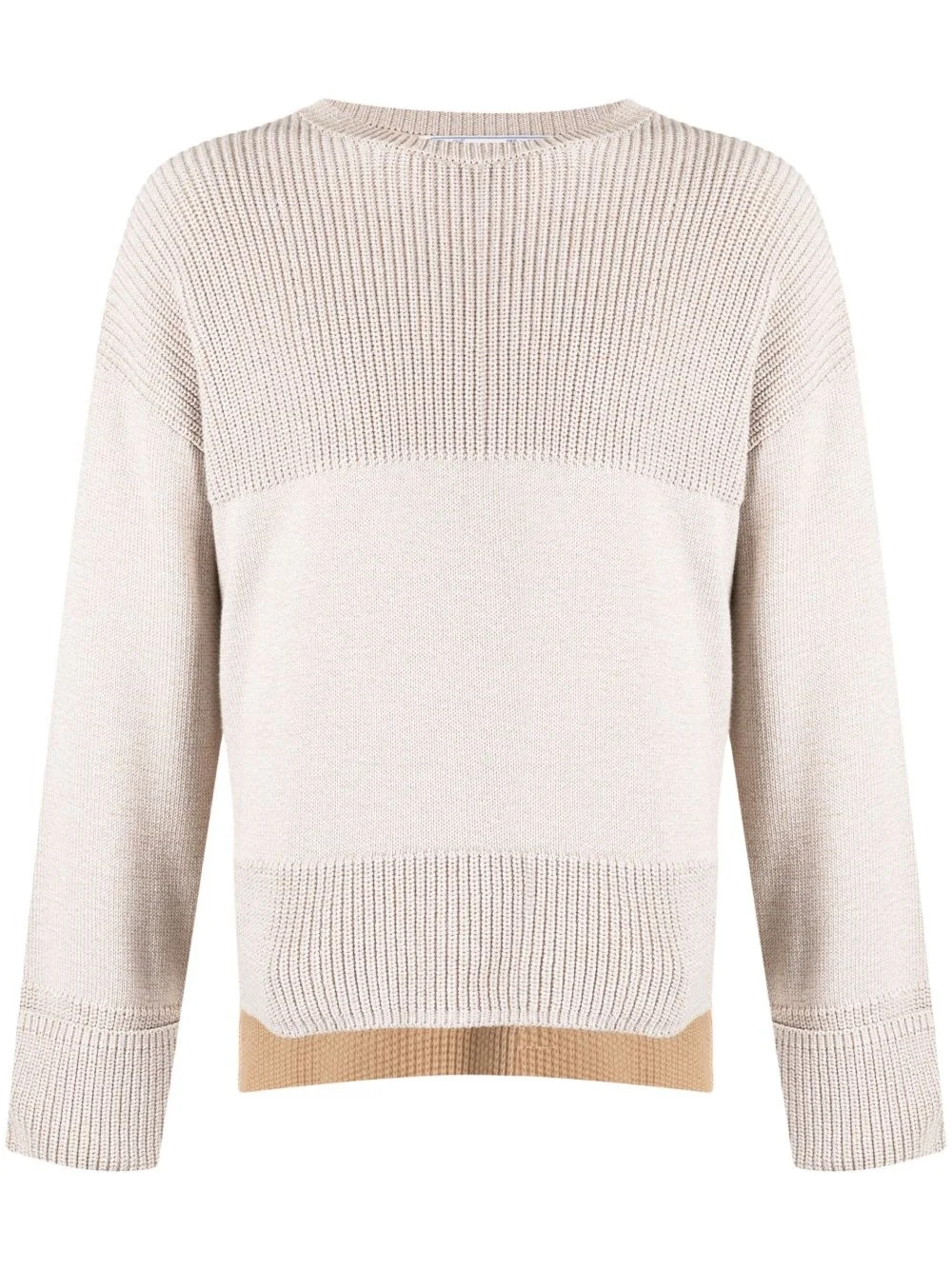colour-block ribbed-knit jumper Crafted from a soft cotton blend, this OFF-WHITE jumper is punctuated by its colour-block design. The ribbed knit on the back is shaped in the house's signature Diag-stripe print for a distinctive branding note. Highlights - Light grey/sand beige - Cotton blend - Ribbed knit - Colour-block design - Signature diag-stripe print - Crew neck - Drop shoulder - Long sleeves - Turn-up cuffs - Straight hem Made in Italy Composition Cotton 67%, Polyester 33% SIZE & FIT Model measurements Height 5 ft 9 in(1.76 m) Bust/Chest 31.1 in(79 cm) Hips 35.03 in(89 cm) Waist 24.4 in(62 cm) FittingInformation Designed to be unstructured, offering a loose fit throughout Constructed with additional length on the sleeve Made with a midweight knit, this piece offers some stretch This piece fits true to size – take your usual size