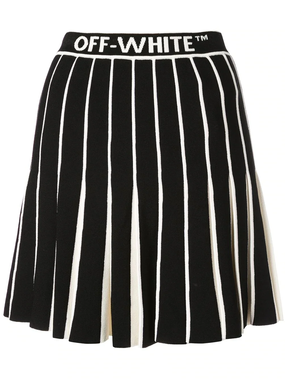 contrasting pleated skirt Headquartered in Milan, the youth-driven label Off-White is committed to redefining the meaning of streetwear within high-fashion, as shown in this black and white contrasting pleated skirt. Featuring an elasticated waistband, pleated details and a signature logo at the waist. Made in Italy Composition Viscose 83%, Polyester 17% SIZE & FIT Model measurements Height 5 ft 10 in(1.79 m) Bust/Chest 31.1 in(79 cm) Hips 33.85 in(86 cm) Waist 22.83 in(58 cm) Washing instructions Dry Clean Only