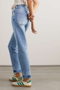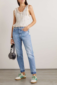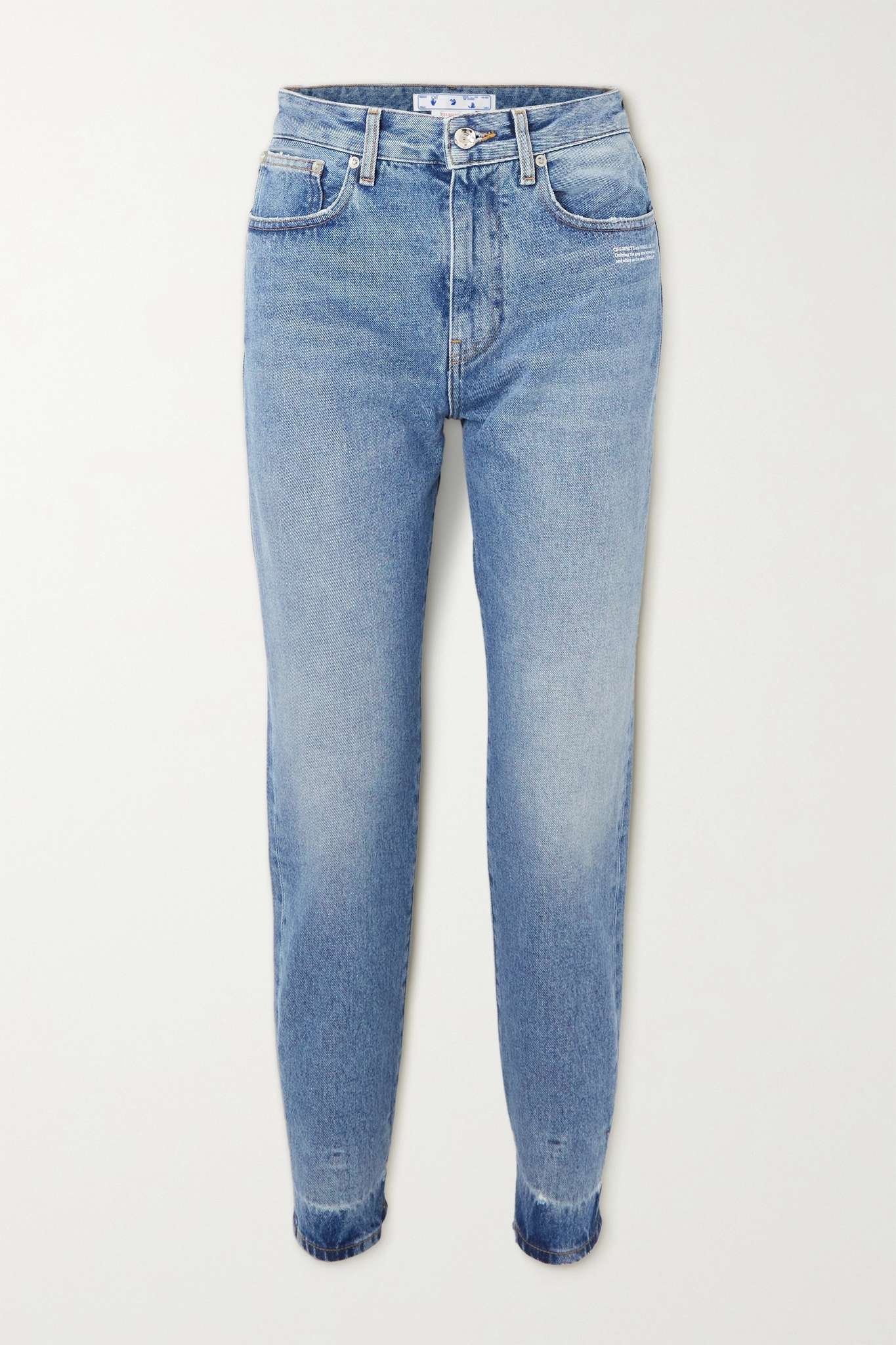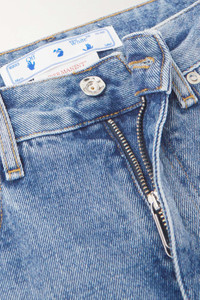 EDITORS'NOTES Off-White's 'Corporate' jeans have a washed, lightly distressed finish that makes it look like they've been favorites for years. Made in Italy from denim, they have a comfortable high-rise waistband and slim legs. True to the label's form, they are stamped with branding at the pocket and fasten with a signature paperclip zipper. SIZE & FIT - Fits true to size, take your normal size - High-rise, designed for a slim fit - Mid-weight, non-stretchy fabric - Size 26 jeans have an inside leg of 27”/ 68cm - Model is 175cm/ 5'9" and is wearing a size 26 DETAILS & CARE - Light-blue denim - Button and concealed zip fastening at front - 100% cotton - Machine wash
