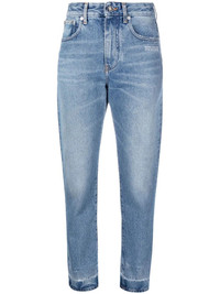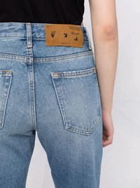 logo cropped jeans Off-White's logo is brought back season after season with distinct colours and finishes. In these cropped jeans, made of cotton, the signature appears at the front in a white shade. Highlights - Blue - Cotton - Logo print to the front - Mid-rise - Belt loops - Front button fastening - Classic five pockets - Cropped Made in Italy Composition Outer: Cotton 100% Lining: Cotton 100% SIZE & FIT Model measurements Height 5 ft 9 in(1.75 m) Bust/Chest 31.49 in(80 cm) Hips 34.64 in(88 cm) Waist 24.01 in(61 cm) Washing instructions Machine Wash