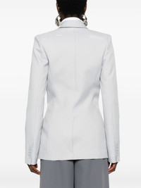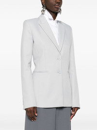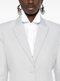 single-breasted blazer Highlights - Light grey - Peak lapels - Shoulder pads - Long sleeves - Buttoned cuffs - Two front jetted pockets - Logo print to the rear - American rear vent - Logo-jacquard lining - Front button fastening Made in Italy Composition Outer: Polyester 100% Lining: Viscose 100% Washing instructions Dry Clean Only