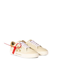 These skate-inspired low-top sneakers are constructed with a 100% leather upper and an embroidered arrow logo. They feature a vulcanized rubber sole and are complete with "ZIP TIE" tag. DETAILS - ZHENDAN WEARS SIZE 40 HEIGHT: 5' 7” (175 CM) BUST: 29” (74 CM) WAIST: 25“ (64 CM) HIPS: 33” (86 CM) - Materials:LINING:Cotton 60%, OUTER:Leather 100%, LINING:Leather 40%, SOLE:Rubber 100% - Code: OWIA288S25LEA0010A6D