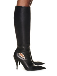 Black crescent boots featuring silver detail and black heel. MATERIALS Outer: 100% Leather Lining: 100% Leather Sole: 100% Leather FITTING Bust 0cm Height 0cm Hips 0cm Waist 0cm