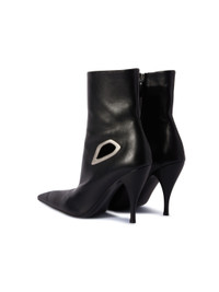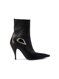 Black crescent bootie heels featuring silver details. MATERIALS Outer: 100% Leather Lining: 100% Leather Sole: 100% Leather FITTING Bust 0cm Height 0cm Hips 0cm Waist 0cm