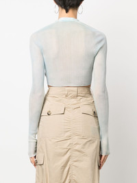 cropped embroidered-logo cardigan light blue cropped embroidered logo at the chest V-neck front button fastening long sleeves Made in Italy Composition Polyamide 70%, Polyester 30% SIZE & FIT Model measurements Height 5 ft 11 in(1.8 m) Bust/Chest 31.49 in(80 cm) Hips 35.43 in(90 cm) Waist 24.4 in(62 cm) Washing instructions Dry Clean Only