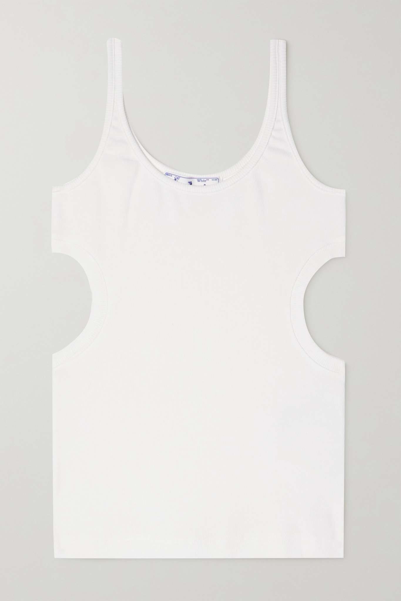 EDITORS'NOTES The staple tank has a place in every woman's wardrobe. Off-White's stretch-cotton jersey iteration is punctuated with 'Meteor'-shaped cutouts on both sides of the torso for unexpected flashes of skin. You can style it with almost everything in your wardrobe. SIZE & FIT - Fits true to size, take your normal size - Designed for a close fit - Lightweight, stretchy fabric - Model is 177cm/ 5'10" and is wearing an IT 40 DETAILS & CARE - White stretch-cotton jersey - Slips on - 95% cotton, 5% elastane - Machine wash