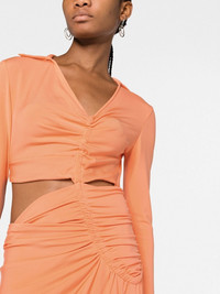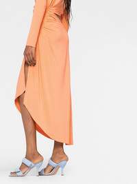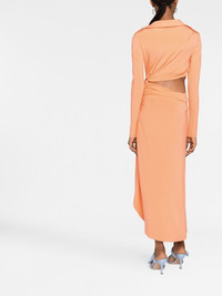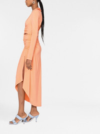 cut-out draped dress Off-White catches the eye with this draped midi dress, fashioned with bold cut-out panels in a striking orange hue. Highlights - Carrot orange - Stretch-design - Fully draped - Cut-out detailing - V-neck - Long sleeves - Front slit - Asymmetric hem - Mid-length Made in Italy Composition Viscose 95%, Elastane 5% SIZE & FIT Model measurements Height 5 ft 10 in(1.77 m) Bust/Chest 32.28 in(82 cm) Hips 34.25 in(87 cm) Waist 24.01 in(61 cm) FittingInformation This piece fits true to size. We recommend you get your regular size Designed for a close fit at the bust, waist and hips Made with a mid-weight stretch fabric Washing instructions Hand Wash