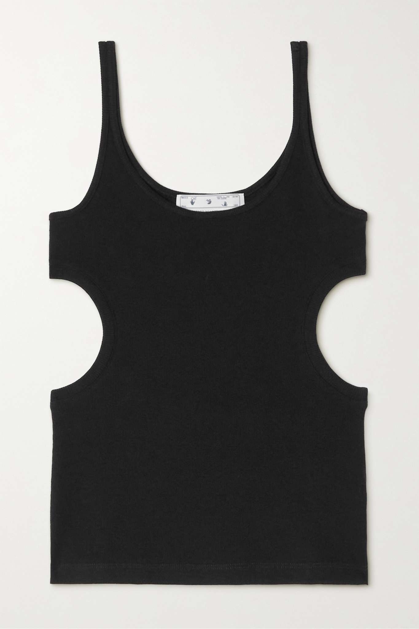 EDITORS'NOTES The staple tank has a place in every woman's wardrobe. Off-White's stretch-cotton jersey iteration is punctuated with 'Meteor'-shaped cutouts on both sides of the torso for unexpected flashes of skin. You can style it with almost everything in your wardrobe. SIZE & FIT - Fits true to size, take your normal size - Designed for a close fit - Lightweight, stretchy fabric - Model is 177cm/ 5'10" and is wearing an IT 40 DETAILS & CARE - Black stretch-cotton jersey - Slips on - 95% cotton, 5% elastane - Machine wash