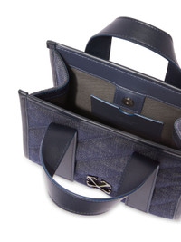 This mini tote bag is crafted from 100% cotton quilted denim with a leather handle and woven logo shoulder strap and features an arrow logo plaque. Made in Italy. DETAILS - JUNI WEARS SIZE O/S HEIGHT: 5' 7” (176 CM) BUST: 28” (73 CM) WAIST: 23“ (60 CM) HIPS: 35” (89 CM) - Materials:LINING:Cotton 95%, OUTER:Cotton 100%, OUTER:Calf Leather 100%, LINING:Acrylic 5% - Code: OWNA238S25FAB0014900