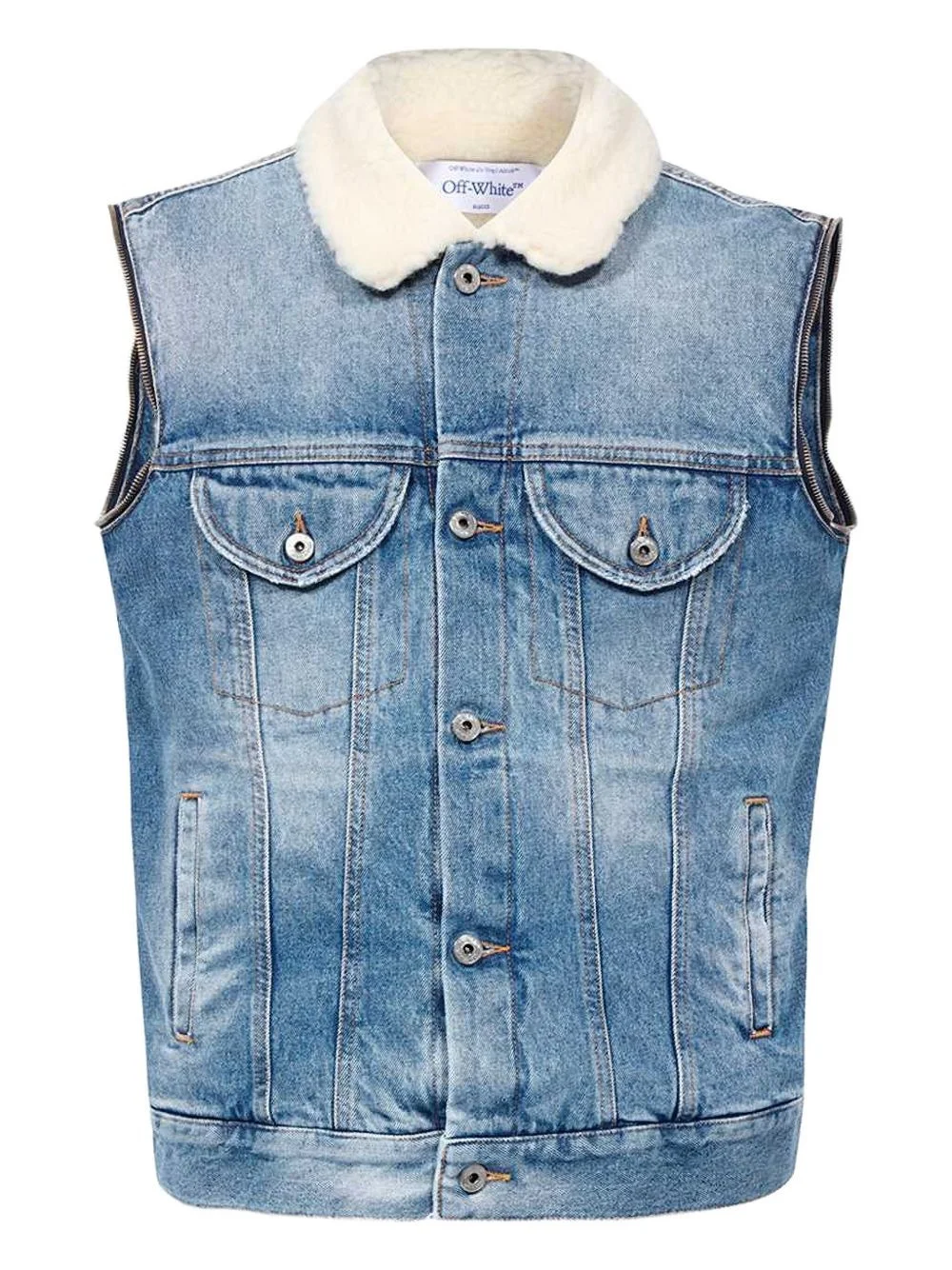 denim vest Highlights - Light blue - Sherpa collar - Button fastening Made in Italy Composition Lining: Wool 70%, Cotton 30% Outer: Cotton 100% Washing instructions Read Manufacturer Guidelines