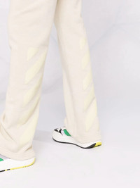 Diag stripe track pants Off-White is known for adding a streetwear twist to classic wardrobe staples. A fine example are these track pants, which come crafted from soft white cotton and feature a nearly tonal Diag logo print across the leg for a final stamp. Highlights - White - Organic cotton - Loopback knit - Signature diag-stripe print - High waist - Drawstring fastening waist - Slip pockets to the sides - Straight leg - Ankle-length Made in Italy Composition Lining: Cotton 100% Outer: Cotton 100% SIZE & FIT Model measurements Height 5 ft 11 in(1.8 m) Bust/Chest 31.49 in(80 cm) Hips 36.61 in(93 cm) Waist 24.4 in(62 cm) FittingInformation This piece fits true to size. We recommend you get your regular size Designed to be fitted at the waist and hips, loose over the leg Made with a mid-weight fabric Washing instructions Machine Wash