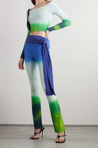 - Blue, white and tonal-green stretch-knit - Pull on - 83% viscose, 17% polyester - Dry clean