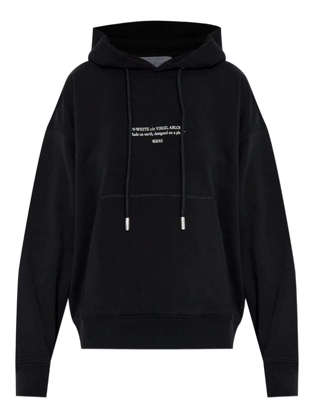 drawstring logo-detail hoodie Highlights - Black - Drawstring hood - Front pouch-pocket - Silver-tone hardware - Ribbed hem - Ribbed cuffs Imported Composition Cotton 100% Washing instructions Read Manufacturer Guidelines