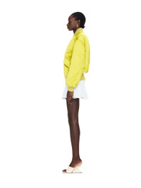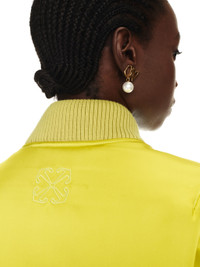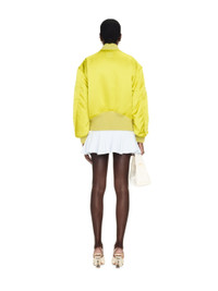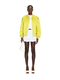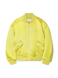 This duchesse satin bomber jacket features piped seams and classic ribbed finishes at the neckline, cuffs and waistband. A small embroidered logo appears at the chest and an arrow logo on the reverse. Made in Italy. MATERIALS Outer: 36% Polyamide Outer: 64% Viscose Lining: 100% Viscose FITTING Model Diara Wade wears size 40 Height: 5’ 11" (180 cm) Chest: 32” (81 cm) Waist: 24” (62 cm)