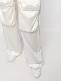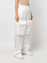 Duchesse Cargo trousers Off-White showcases utilitarian influences for AW22, whilst maintaining their futuristic design style. Showcasing the concept, these cargo trousers are presented as a wide-leg silhouette, whilst the exaggerated front pockets contribute to their modern look. Made in Italy Composition Outer: Viscose 100%, Virgin Wool 91%, Polyamide 6%, Elastane 3% Lining: Cotton 100% SIZE & FIT Model measurements Height 5 ft 11 in(1.8 m) Bust/Chest 33.07 in(84 cm) Hips 37.4 in(95 cm) Waist 25.19 in(64 cm) FittingInformation This piece fits true to size. We recommend you get your regular size Designed to be fitted at the waist, loose over the leg Made with a mid-weight non-stretch fabric Washing instructions Dry Clean Only