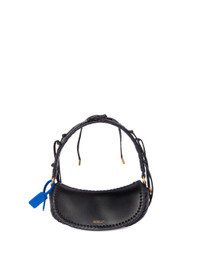 Black leather shoulder bag with edge details all over. MATERIALS Outer: 100% Calf Leather Lining: 5% Acrylic Lining: 95% Cotton FITTING Bust 0cm Height 0cm Hips 0cm Waist 0cm