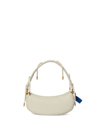 White shoulder bag with zip closure and frange details.Blue label at side MATERIALS Outer: 100% Calf Leather Lining: 95% Cotton Lining: 5% Acrylic FITTING Bust 0cm Height 0cm Hips 0cm Waist 0cm