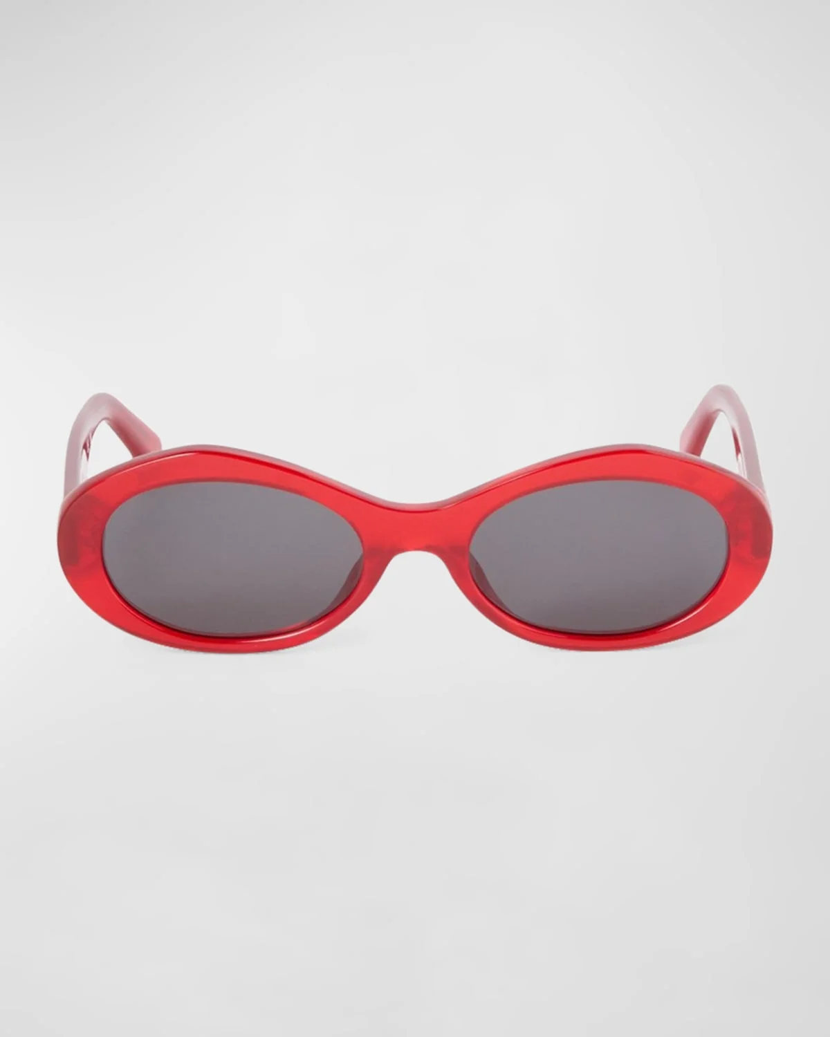 - Off-White "Edison" oval sunglasses in acetate - Lens/bridge/temple (in mm): 55-20-130 - Solid-color lenses - Signature arrow metal on temples - Thin, tapered arms - 100% UVA/UVB protection - Made in Italy - Proposition 65 warning for California residents