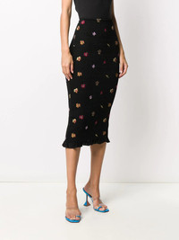 embroidered-leaves mid-length skirt There's no guarantee that you'll always be the best-dressed in the room. Unless you're in this embroidered-leaves Off-White skirt of course. Then there's no competition. Highlights - Black/multicolour - High waist - Textured finish - Stretch-fit - Embroidered design - Mid-length - Frill hem Made in Italy Composition Viscose 100% SIZE & FIT Model measurements Height 5 ft 10 in(1.78 m) Bust/Chest 33.46 in(85 cm) Hips 36.22 in(92 cm) Waist 23.22 in(59 cm) FittingInformation This piece fits true to size. We recommend you get your regular size Cut for a slim fit Made with a mid-weight fabric Washing instructions Hand Wash