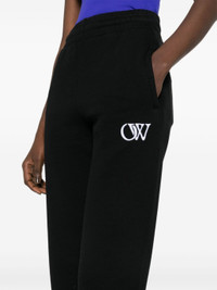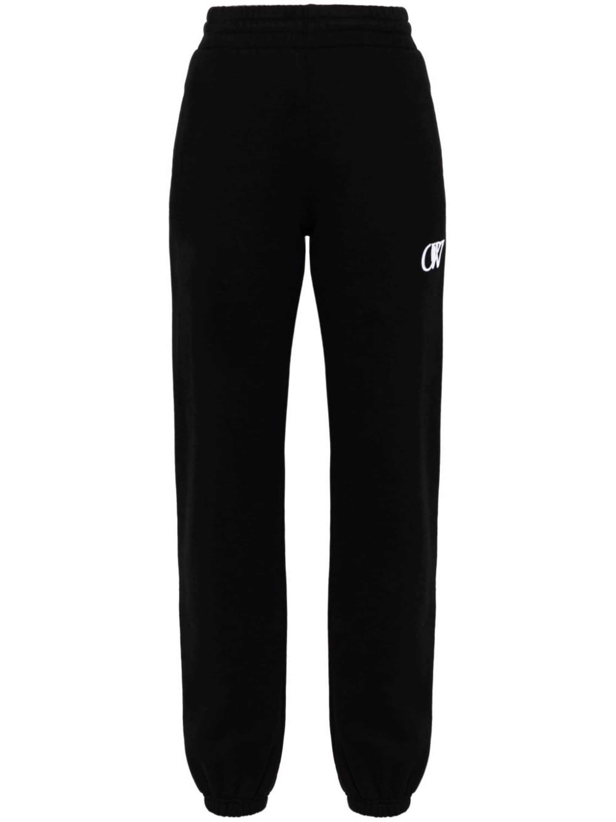 black cotton elasticated waistband two diagonal pockets to the sides embroidered logo at the leg elasticated ankles internal drawstring fastening waist Size & Fit Model Measurements: Height: 1.81 m Bust/Chest: 83.0 cm Hips: 90.0 cm Waist: 60.0 cm Model wears size XS Fabric and Care Designer Style ID: OWCH006S24FLE0011001 Designer Colour: 1001 BLACK / WHITE Composition: Cotton 100% Washing instructions: Machine Wash Made in Portugal