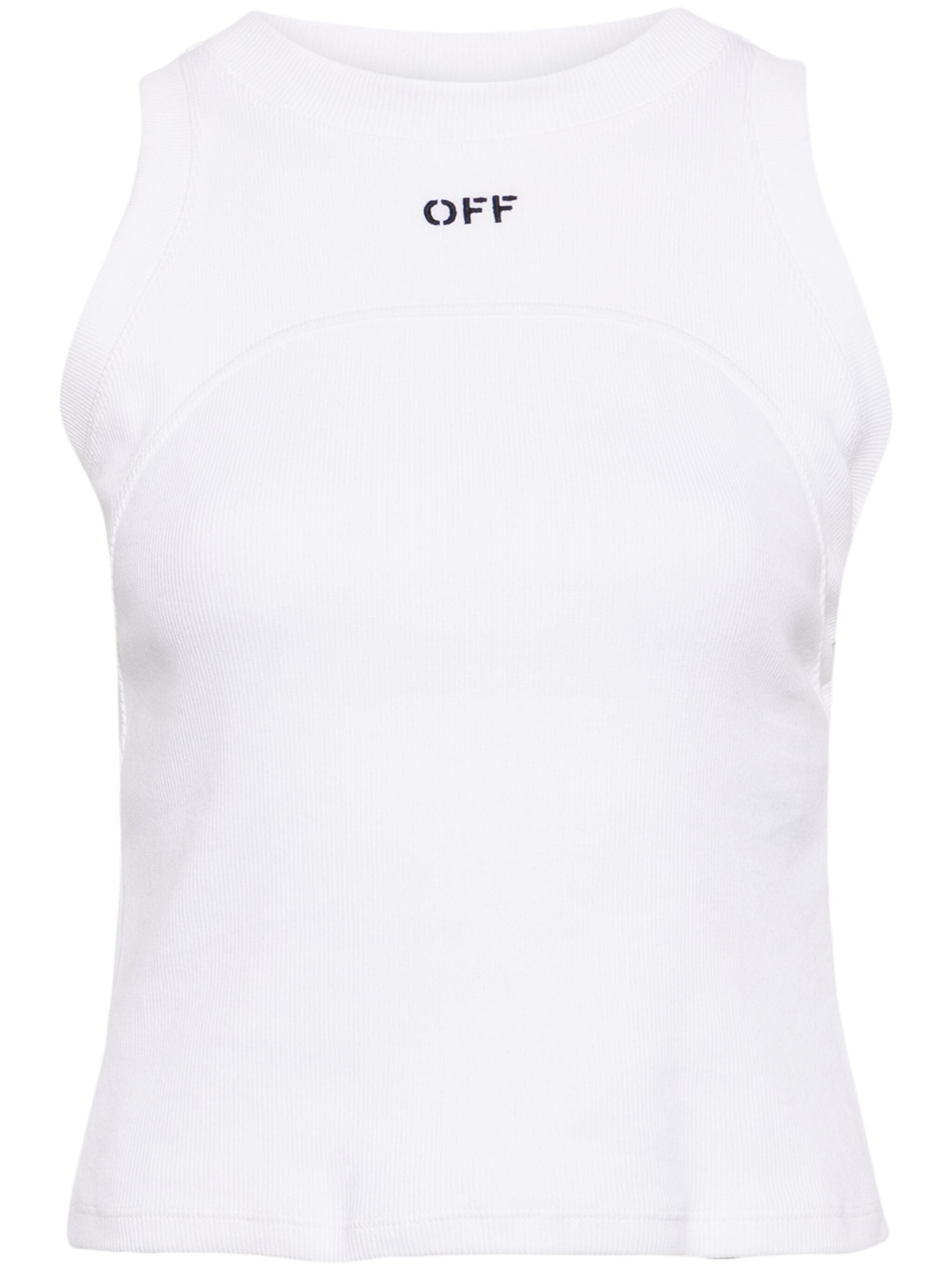 white/black jersey texture fine ribbed panelled design embroidered logo to the front crew neck sleeveless straight hem authenticity QR code - Color: WHITE - Made in: Italy - Designer Style ID: OWAD236C99JE R001 0110 Composition and care Cotton: 98.0%, Spandex/elastane: 2.0%
