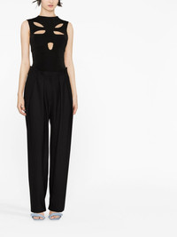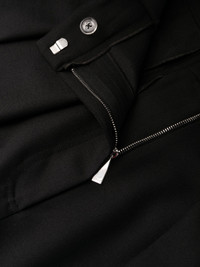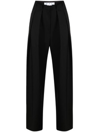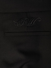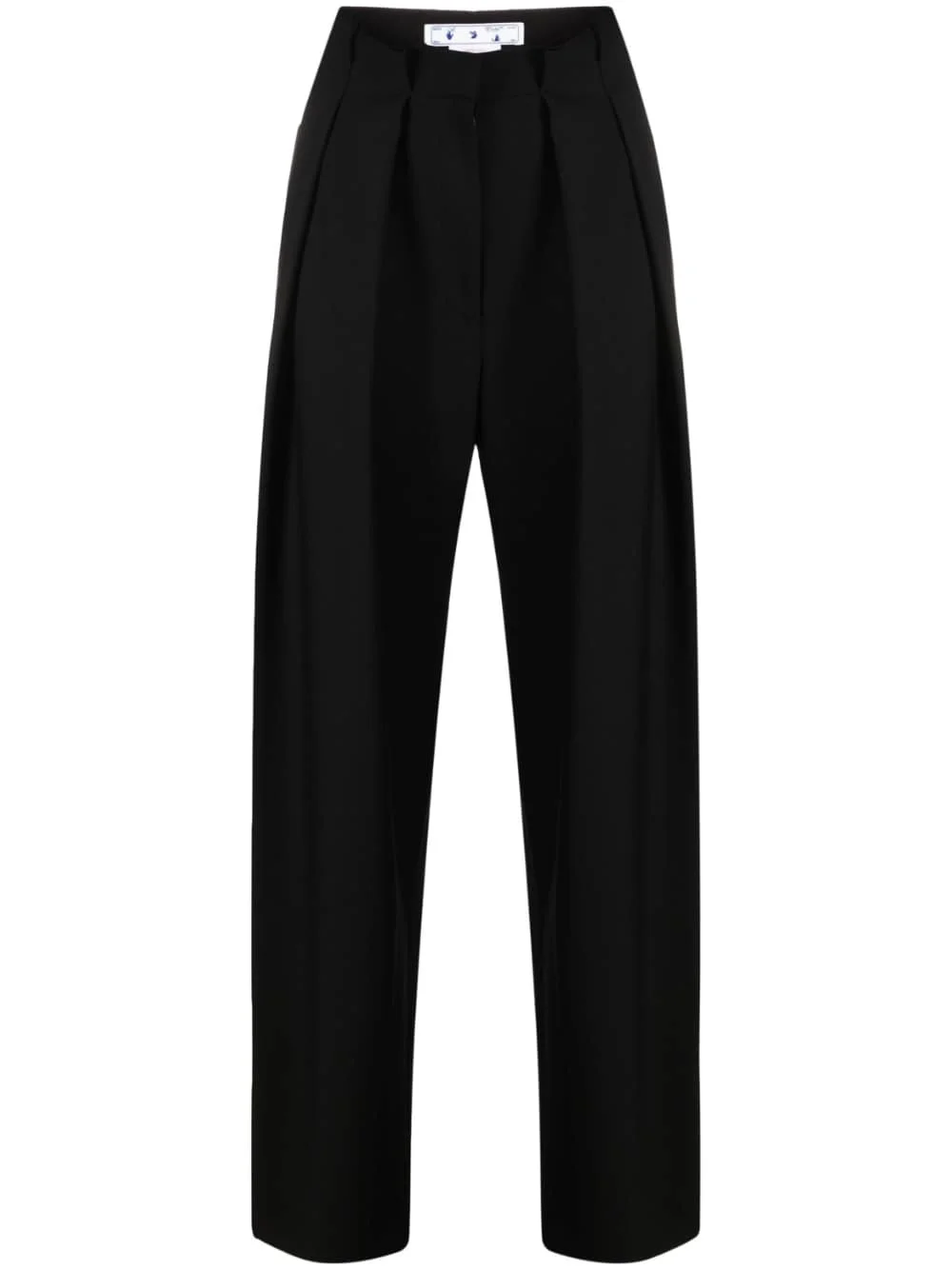 embroidered-logo tailored trousers Off-White reimagines a classic tailored silhouette with directional detailing in these black trousers. Emphasising the confident mood, they're characterised by a sculptural waistband and signature logo embroidery. Highlights - Black - Virgin wool blend - Embroidered logo to the rear - Pleat detailing - High waist - Hook and zip fly fastening - Two rear welt pockets - Tailored cut Made in Italy Composition Polyester 53%, Virgin Wool 43%, Spandex/Elastane 4% SIZE & FIT Model measurements Height 5 ft 10 in(1.77 m) Bust/Chest 31.49 in(80 cm) Hips 35.03 in(89 cm) Waist 23.22 in(59 cm) Washing instructions Hand Wash
