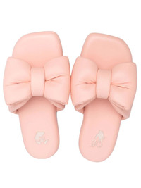 extra padded bow slides Maximalism and industrial insignia define Off-White's collections. Crafted from leather in a pink hue, these slides present a slip-on style and open toe that stands out thanks to their extra padded design and bow detail. Made in Italy Composition Outer: Nappa Leather 100% Sole: Leather 100% Lining: Leather 100% SIZE & FIT Measurement HEEL 1.18 in(3 cm) Sole height 0.78 in(2 cm)
