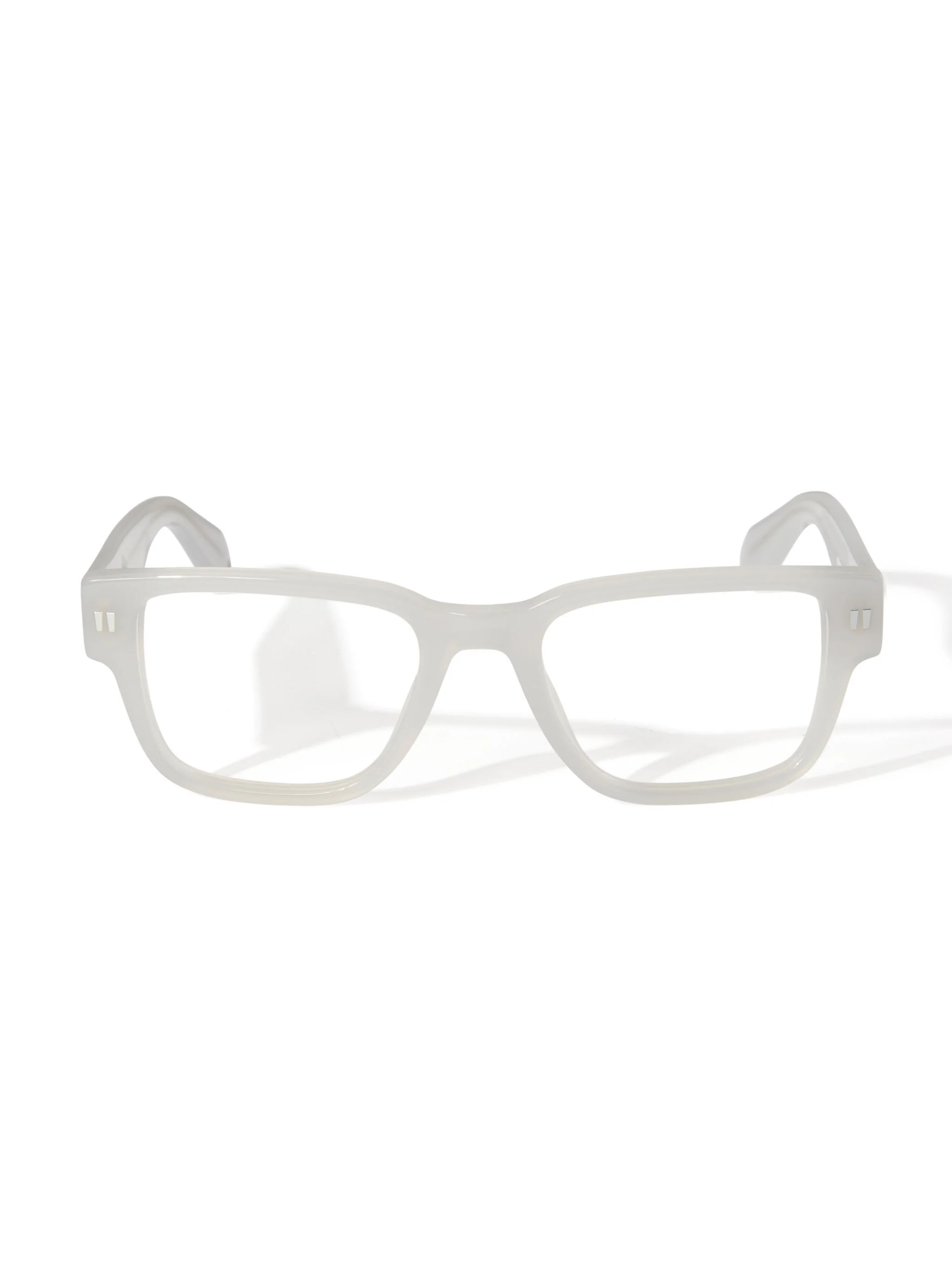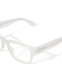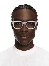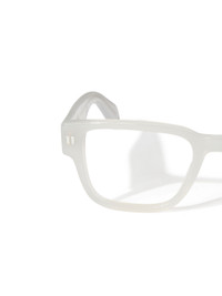 These acetate optical glasses feature a retro-inspired geometric silhouette with a graphic step on the nose and extended sides. They are completed with signature quotation marks on the temples and bookish logos on the arms. Made in Italy DETAILS - Acetate 100% - Code: OERJ07VS25PLA0010900