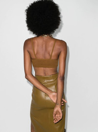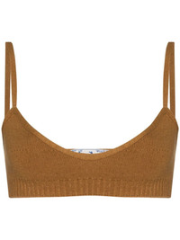 fine-knit strappy bralette They say the best things come in small packages, and this bralette from Off-White is no exception. In a fine knit design, this is a micro-sized piece that packs a satorial punch. Ready to get in the ring? Highlights - Brown - Wool-blend - Fine knit - V-neck - Spaghetti straps - Ribbed hem - Cropped Made in Italy Composition Wool 91%, Polyamide 7%, Spandex/Elastane 2%
