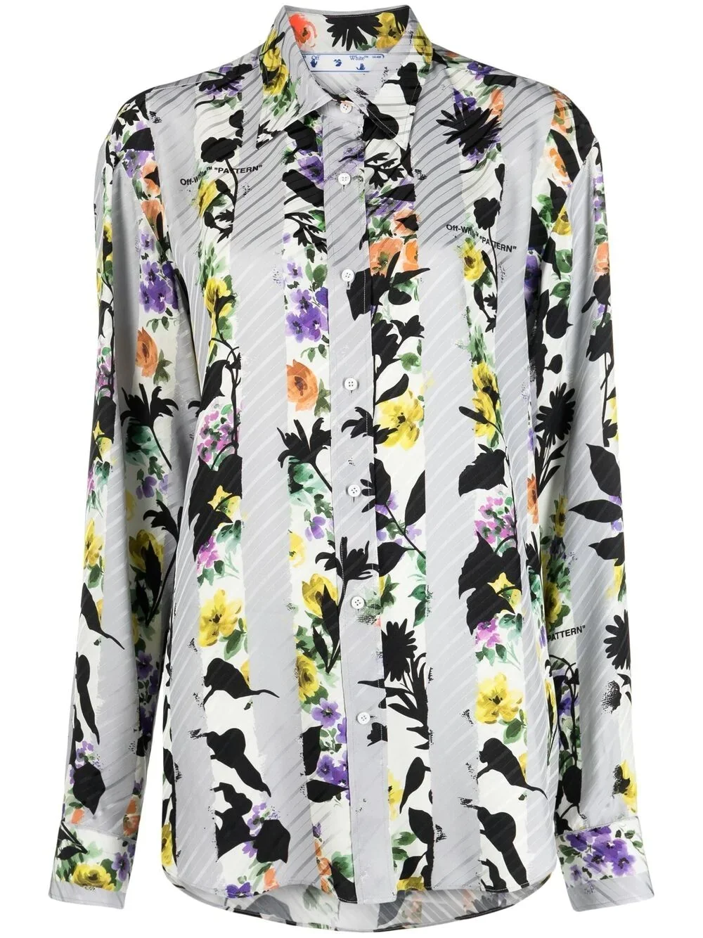 floral-print long-sleeve shirt You never knew that florals could look this modern. But life is full of surprises. Go for the unexpected in this printed Off-White shirt. Made in Italy Composition Viscose 100% SIZE & FIT Model measurements Height 5 ft 11 in(1.8 m) Bust/Chest 31.49 in(80 cm) Hips 35.82 in(91 cm) Waist 24.8 in(63 cm) FittingInformation This piece fits true to size. We recommend you get your regular size Cut for a loose fit Made with a mid-weight non-stretch fabric Washing instructions Dry Clean Only