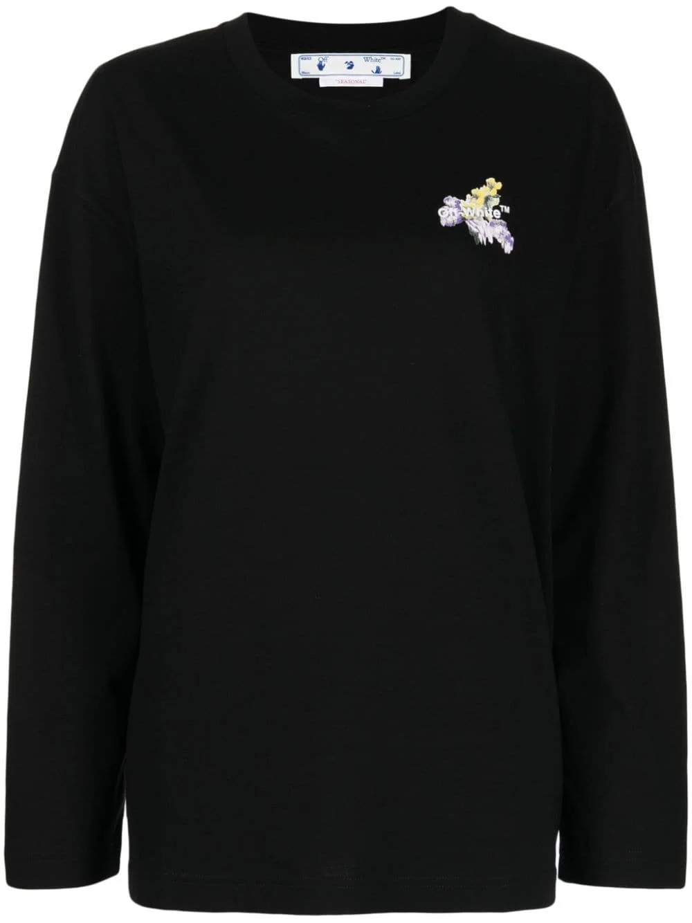 Flower Arrow cotton sweatshirt Off-White's signature Arrows logo appears on this sweatshirt covered in pastel florals, lending a delicate touch to the brand's streetwear aesthetic. The design is replicated on a small graphic print on the chest. Highlights - Black - Cotton - Crew neck - Drop shoulder - Long sleeves - Graphic print at the chest - Signature arrows motif - Floral print - Straight hem Imported Composition Outer: Cotton 100% glass 80%, Metal 10%, Polyester 5%, Acrylic 5% SIZE & FIT Model measurements Height 5 ft 9 in(1.76 m) Bust/Chest 31.1 in(79 cm) Hips 35.03 in(89 cm) Waist 24.4 in(62 cm) FittingInformation Designed to be unstructured, offering a loose fit throughout Made from a midweight non-stretch fabric, this piece offers minimal elasticity when worn This piece fits true to size – take your usual size Washing instructions Hand Wash