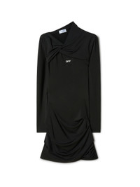 Long sleeves black minidress with OFF script logo in white at front.Twist detail. MATERIALS 10% Elastane 90% Viscose FITTING Model Ikra Ismail wears size S Height: 5’ 10" (178 cm) Chest: 31“ (79 cm) Waist: 24” (61 cm)