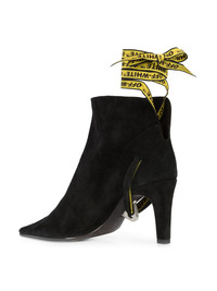 For Walking ankle boots Urban streetwear collides with conventional high design at Off-White, these black suede booties appealing to the iconography of utility with its wraparound yellow laces. printed with the brand logo and fastening to the rear. The ankle length cut features a sharply pointed toe, printed with a contrast 'For Walking' slogan detail to the side of the foot, completed with a low heel, a leather insole and a leather sole. Made in Italy Composition Lining: Calf Leather 100% Sole: Calf Leather 100% Outer: Suede 100% SIZE & FIT Measurement HEIGHT 3.74 in(9.5 cm) HEEL 2.75 in(7 cm) CIRCUMFERENCE 11.81 in(30 cm)