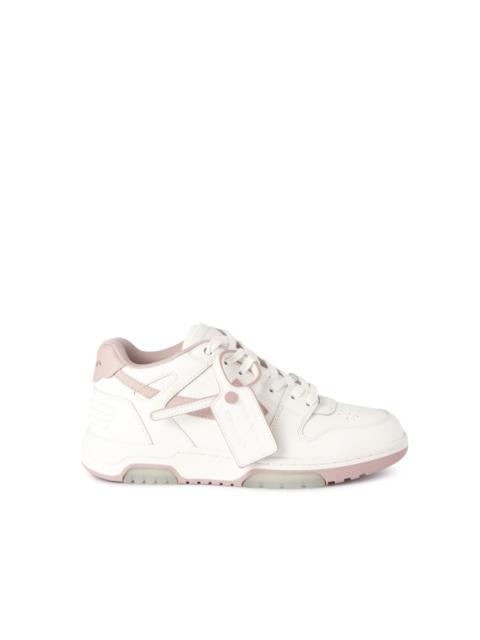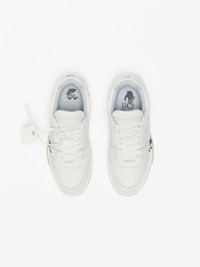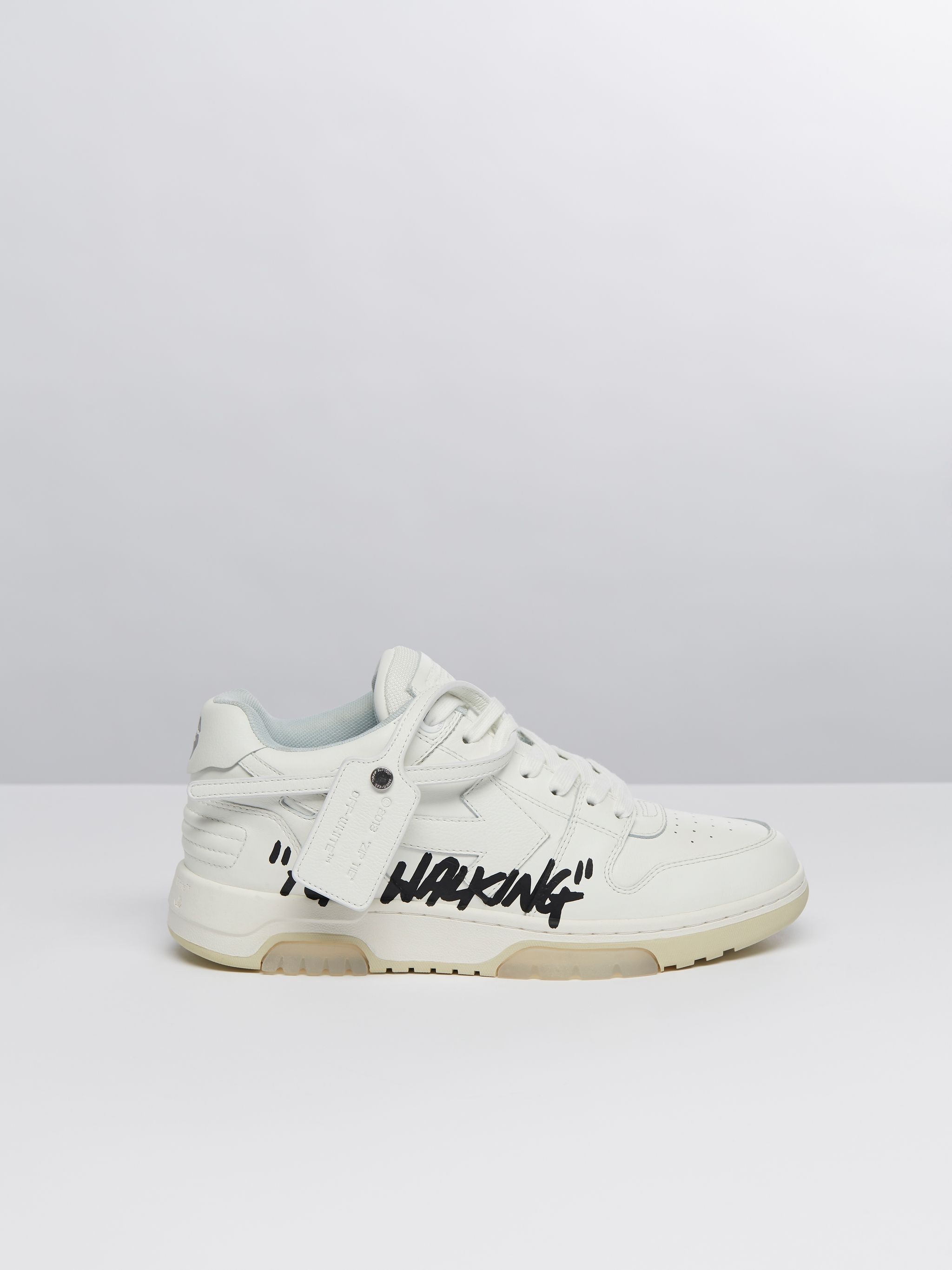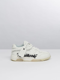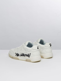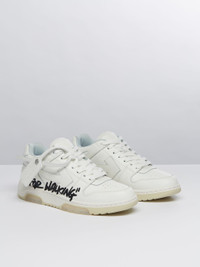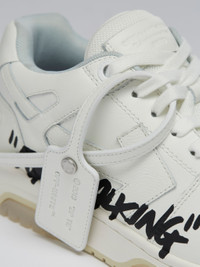 Low white leather Out Of Office sneakers with tonal arrows at sides. Black "FOR WALKING" script at side. White label detail. Tonal laces and rubber sole. MATERIALS Outer: 100% Calf Leather Sole: 100% Rubber Lining: 100% Fabric FITTING Bust 0cm Height 0cm Hips 0cm Waist 0cm