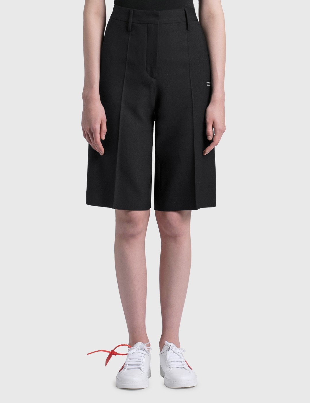 - Off-White - Formal Shorts - High-rise - Knee-length - Text printed at front - Three-pocket styling - Belt loops - Color: Black - Material: 100% Polyester, 4% Elastane, 53% Polyester, 43% Virgin Wool - See more - Shorts - and - Clothing SIZING - Model wears size 40 - Model measures: Height 177cm, Chest 30”/76cm, Waist 23”/59cm, Hip 35”/90cm