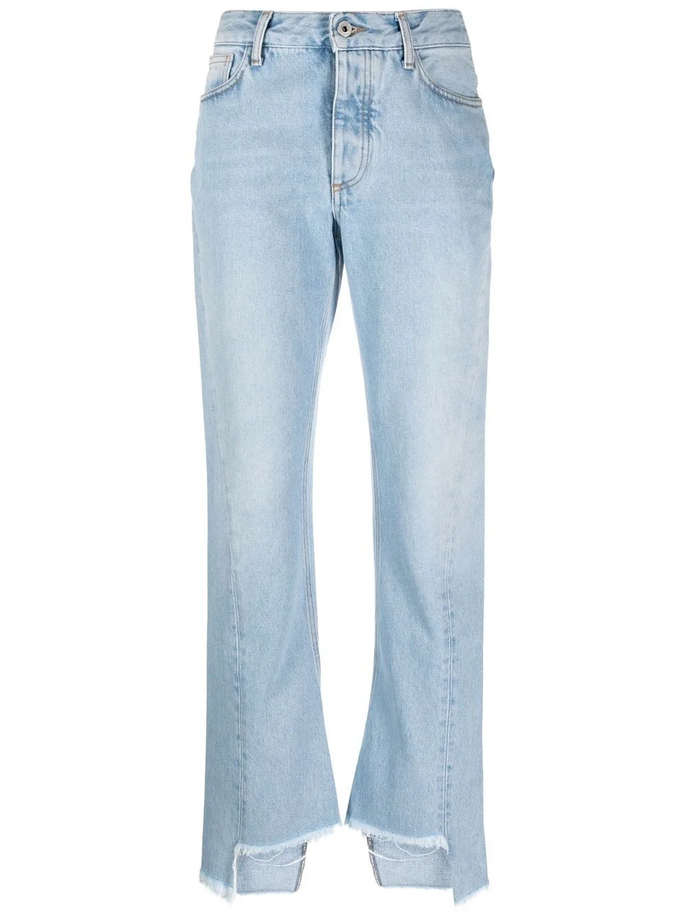 frayed-edge straight-leg jeans Rendered in a light blue wash, these straight-leg jeans from Off-White are given a signature laid-back touch through its distressed frayed hems. Made in Italy Composition Outer: Cotton 100% Lining: Cotton 100% SIZE & FIT Model measurements Height 5 ft 10 in(1.79 m) Bust/Chest 31.49 in(80 cm) Hips 35.03 in(89 cm) Waist 23.62 in(60 cm) FittingInformation This piece fits true to size. We recommend you get your regular size Designed to be fitted at the waist and hips, loose over the leg Made with a mid-weight non-stretch fabric Washing instructions Machine Wash