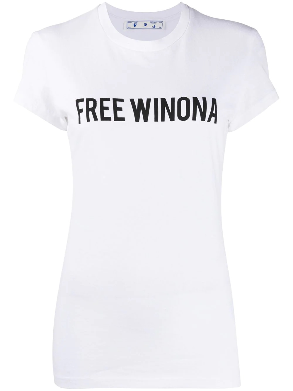 White cotton Free Winona printed T-shirt from OFF-WHITE featuring slogan print to the front, logo print to the rear, round neck and short sleeves. Highlights - White - Cotton - Slogan print to the front - Logo print to the rear - Round neck - Short sleeves Imported Composition Cotton 100%