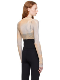 Semi-sheer rib knit nylon- and polyester-blend cardigan. Tie-dye pattern throughout. · V-neck · Button closure · Logo embroidered at chest · Cropped hem Supplier color: Camel/White 70% polyamide, 30% polyester. Made in Italy 231607F095007