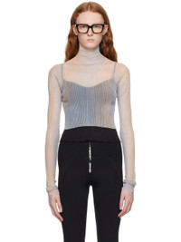 Semi-sheer rib knit nylon- and polyester-blend turtleneck. · Tie-dye pattern throughout · Logo embroidered at chest Supplier color: Camel/White 70% polyamide, 30% polyester. Made in Italy 231607F099006