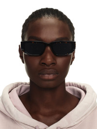 These acetate sunglasses feature a geometric cat-eye silhouette with a faceted finish. They are completed with arrow logos on the arms. Made in Italy. MATERIALS 100% Acetate FITTING Bust 0cm Height 0cm Hips 0cm Waist 0cm
