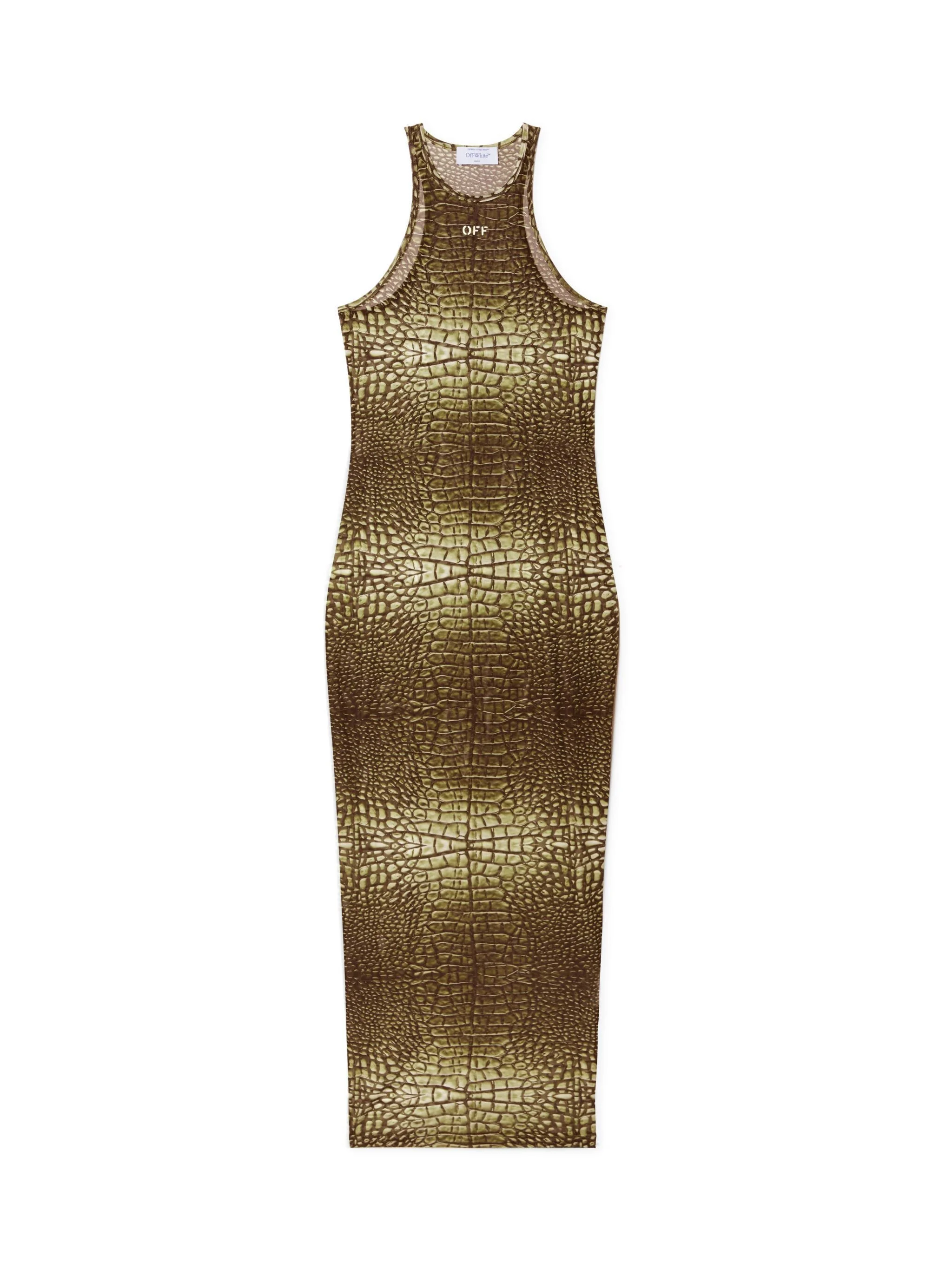 This long dress is crafted from mesh with a crocodile print and features a small stamp logo. Made in Italy. DETAILS - JUNI WEARS SIZE 38 HEIGHT: 5' 7” (176 CM) BUST: 28” (73 CM) WAIST: 23“ (60 CM) HIPS: 35” (89 CM) - Materials:Polyamide 93%, Spandex/Elastane 7% - Code: OWDB54JS25JER0015810