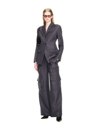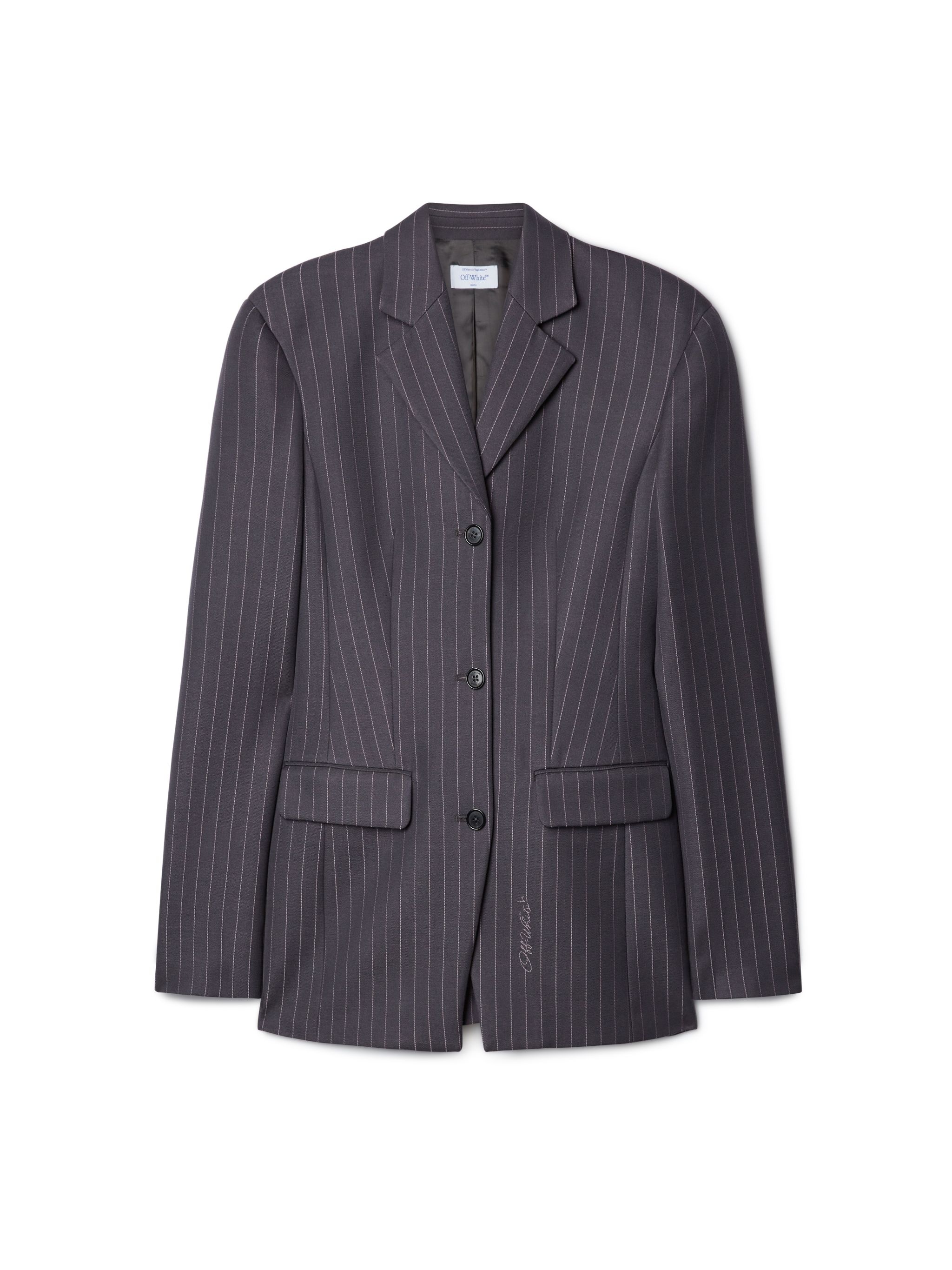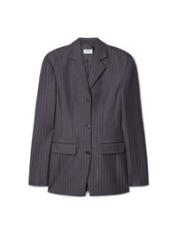 This fitted pinstripe jacket is crafted from a wool blend and features a small script logo. Made in Italy. MATERIALS 80% Virgin Wool 20% Polyester FITTING Model Sarah Ferguson wears 38 Height: 5' 10.5'' (179 cm) Chest: 31'' (79 cm) Waist: 23” (60 cm) Hips: 35'' (89 cm)