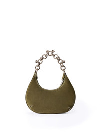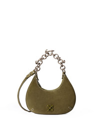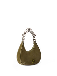 The Hemisphere Suede Bag, an embodiment of refined streetwear luxury, showcases a sculpted silhouette adorned with a robust chain strap. - Suede construction with a distinctive crescent shape - Chain handle detailing for an urban aesthetic - Adjustable leather strap for versatile styling - Exposed stitching adds structural definition - Embossed logo motif on the front panel - Rear features a subtle embossed brand insignia - Single compartment interior for streamlined functionality - Crafted for both style and practicality - Made in Italy DETAILS - Details: 100% Calf Leather, Lining: 5% Acrylic 95% Cotton, Material: 100% Calf Leather - Code: OWNN184F25LEA0035800