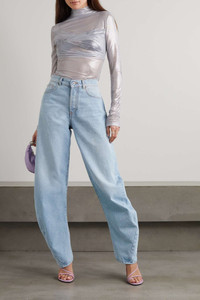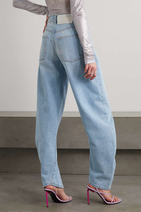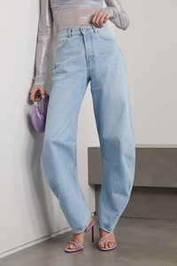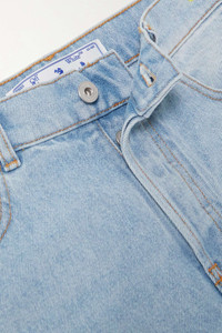 EDITORS'NOTES Distinctive denim is at the core of Off-White's collections. These jeans are cut with a curved banana shape for a sculptural effect that twists around to taper neatly at the ankle. Style yours with square-toe sandals. SIZE & FIT - Fits true to size, however those who are between sizes should take the smaller size - High-rise, cut for a relaxed fit, tapered at the hem - Weighted, non-stretchy fabric - Model is 177cm/ 5'10" and is wearing a size 26 DETAILS & CARE - Light-blue denim - Partially concealed button fastenings along front - 100% cotton - Machine wash