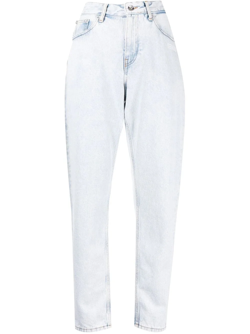 high-rise tapered jeans Off-White's jeans riff on 1980s styles. This light blue pair has a relaxed high-rise silhouette that tapers at the ankles. Made in Italy Composition Cotton 100% Washing instructions Dry Clean Only